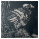 This design features a print of an engraving by the Dutch artist Jan Mankes (1889–1920). It depicts a bird in a rural landscape. The bird is a young chick that is emerging from its nest. The creature has some fluffy feathers on its body, but it has not yet developed its full plumage. There are some stylised poppies growing behind the bird. The original art was painted in 1917.