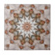Ceramic tile featuring a geometric design based on bird feathers. A beautiful nature inspired star mosaic design in light colours with rose gold effects. The image is large enough for both the small or large size tile and will fit nicely in a kitchen or bathroom.