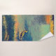 Original photo of a bird in a pond, artistically edited with poly art effects. Washcloths, hand towels, and bath towels available as a set or individually sold.