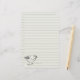 A nature wildlife themed lined stationery featuring a little bird on a branch hand drawn with black ink on a white smoke background. On the back is the same shade of white. Coordinates nicely with my little bird business cards!