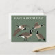 Send the perfect greeting to your favourite bird lover with this customisable postcard. The HAVE A GOOSE DAY! message on the front can be customised with your own saying. Plus there's plenty of room on back for writing your own message. This postcard features realistic style illustrations of Canada geese in brown, black and white against a sage green background.