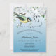 A beautiful bird themed retirement party invitation featuring a pretty yellow bird on a branch with white flowers and blue gradient background.