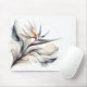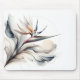 The Bird of Paradise flower with soft flowing lines incorporates shades of white, grey, and warm tones on a white background