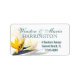 Tropical themed address labels have a bird-of-paradise flower and dark green template text in template form. First and last names have various font styles for an elegant and unique look. All text can be deleted as well.