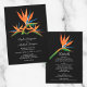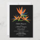 An elegant watercolor of tropical bird of paradise flowers on your choice of background colour with your wedding ceremony details in chic white lettering on the front and your wedding details are on the back of this all in one invitation. MATCHING items in our store.