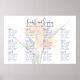 Seating chart for a tropical or Hawaiian wedding. Bird of paradise flowers are the background for listing wedding guests by table number. With twelve sections for tables, or remove unneeded tables as needed. Text is dark blue with first names of the bride and groom at the top. This poster is 24 x 36 inches and can be purchased with a frame - many available. This seating chart can also be customised and purchased as a download.