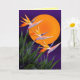 Bird of paradise note Card. Original image and illustration composition of beautiful tropical bird of paradise flowers on the background of a full orange moon. Blank card for any occasion.