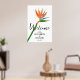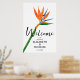 A tropical bird of paradise watercolor flower with Welcome and your wedding details in chic lettering accent this poster, change to any size. Order as INSTANT DOWNLOAD or PRINTED plus MATCHING items and more colours in our collection.