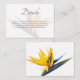 Wedding details enclosure cards with bird of paradise flower design. To match the suite, the white cards have dark purple text to customise with a title and paragraph. A wedding website can be included or other text as needed. The background image is a yellow flower with another image on the back of the cards.