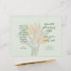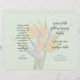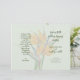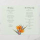 Folded wedding program template with orange bird-of-paradise flowers. Pale green paper with four pages to customise in script and printed dark green text. Include a message to family and friends on the last page / back of program when folded.