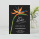 Tropical exotic bird of paradise watercolor flower on a black background makes a beautiful wedding invitation with an exotic flair. Your invitation on the front and more details and RSVP on the back. MATCHING items in our store.