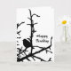 This contemporary fine art birthday card features a black and white modern abstract pattern of a silhouette Dark-eyed Junco (Junco hyemalis) perched on a bare branch high in a tree. This bird is actually a kind of small, gray and white sparrow. More birds are inside. All text can be customized for your special occasion.