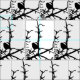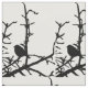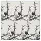 This contemporary fine art fabric design features a black and white modern abstract geometric pattern of a silhouette Dark-eyed Junco (Junco hyemalis) perched on a bare branch high in a tree. This bird is actually a kind of small, grey and white sparrow. You can easily customise the white background to any colour that will suit your project.