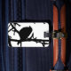 Make your baggage stand out on an airport carousel with unique tag designs! This contemporary fine art luggage tag features a black and white modern abstract pattern of a silhouette Dark-eyed Junco (Junco hyemalis) perched on a bare branch high in a tree. This bird is actually a kind of small, grey and white sparrow. The back has all your personal information as well as another little bird. All text can be customised.