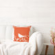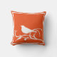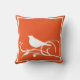 Gorgeous pillow with a white design that features a bird on a swirling branch. There's a border of white as well. We're showing this on a brilliant orange background, but the genius is that you can choose literally any colour you want for the background. Match your sofa, contrast with walls, create any colour pillow you want. It's super simple, just choose "customise this design".