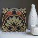 Bird on Flowers Art Deco Nouveau Faux Relief Ceramic Tile