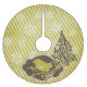 Bird on Olive Stripe vintage style holiday tree skirt features an olive green and cream coloured diagonal striped background with a pretty decorative brown swirl tree, brown banner, white snowflakes, and a pretty olive coloured bird on a branch with berries. This beautiful Bird on Olive Stripe holiday tree skirt makes a great gift or get one for yourself to enjoy for years to come!
