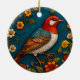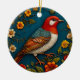 Bird Perched Amongst Colourful Flowers Ceramic Ornament