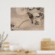 Bird perched on a branch of a blossoming tree. Vintage Japanese Watercolour Painting.