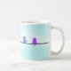 Cute and original drawing of multi-coloured birds on a phone wire in rainbow colour order.