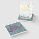 The coasters are gorgeous, a quality feel and heavy weight. They look like a precious archeological find. A rustic stone juxtaposed with a modern floral black and white print. I like the way the print goes slightly imperfect on the cut stone edges giving them a kind-of natural beauty.