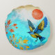 This gorgeous design depicts a blue and gold bird makng a landing on a golden tree with a beautiful sky of many blue colours and a bold orange sun.