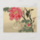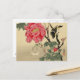 Bird perched on branch, watching a butterfly, with large blossom on bush. Vintage print from the Library of Congress collection (Japanese prints and drawings). Fine eample of traditional old japanese art. Add some orient flavour.