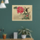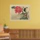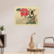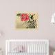 Bird perched on branch, watching a butterfly, with large blossom on bush. Vintage print from the Library of Congress collection (Japanese prints and drawings). Fine eample of traditional old japanese art. Add some orient flavour.