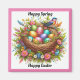 Lovely picture of a bird with a nest full of coloured eggs and pretty flowers, is featured on this magnet for Easter. With message, "Happy Spring, Happy Easter", this colourful magnet would make a great decoration or small gift for Easter time!