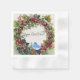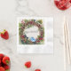 Bird & Wreath Party Napkins French country decor with a blue bird resting - garden colours of green, blue, pink, and warm red. The bird & wreath designs are also available on trivets, coasters, and plates. Personalise each product as you wish.