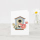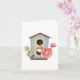 A cute bird perched outside a birdhouse. This design looks really effective on these Greeting Card