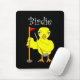 Birdie in curly text with a yellow chick holding a golf club and the flag in a golf hole is a funny gift design for golfers.