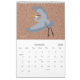 A calendar of cutout-style birds and retro patterns.