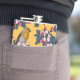 The flask itself is fine. It’s a cheap flask, obviously bought in bulk, however am prepared to overlook that. Given that it is a personalized item, I would have liked to have seen gift boxing instead of the generic packaging. Terrible printing, and/or quality. It’s a cheap, tacky vinyl. It is not cut straight and is also applied in a way that it is overhanging the bottom, causing the glue to catch on items and it will eventually roll and tear, damaging the wrap.