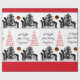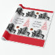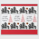 BIRDS AND CHRISTMAS TREE Black White Red Gems Wrapping Paper