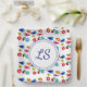 This design features a charming spring pattern with custom initial , showcasing various birds and flowers, set against a pristine white background. The harmonious blend of delicate avian motifs and vibrant blossoms creates a visually pleasing and refreshing composition.