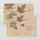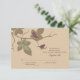 Personalise the text on this leafy vines and birds fall wedding rsvp or reply card. To change the text use the personalise option. For more extensive text changes, such as changes to the font, font colour, font size and/or text placement, use the customise it option. This invitation features an elegant nature design in brown, purple, green, and tan that would work well for a wedding in the fall. Natural colours with a garden or forest feel that are perfect for nature loving brides or outdoor weddings. Although this is currently customised as a reply card for a wedding, it could also be used for other special occasions such as a wedding anniversary, a birthday party invitation, a corporate party invitation, or a retirement party. Or use it as an invitation for any special occasion. Really it's up to you. All you need to do is change the text. You can also change the text and use this as a reception, direction, and/or accommodation card.