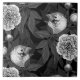 Birds and peony flowers monochrome, grey ceramic tile