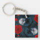 Birds and red peony flowers with blue leaves key ring