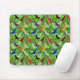 This mouse pad has a nature design of birds in leaves.