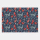 Birds Botanical Woodland Animals Blue Red Pattern Wrapping Paper Sheet