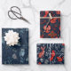 These bird themed, botanical wrapping paper sheets have three different watercolor illustration art patterns. The first one has owls and other birds with leaves and berries in shades of blue, highlighted with red and gold. The second one has bright red birds with flowers, leaves, and berries in red and gold, on a blue background. The third one combines birds with woodland animals. It has birds, hares, and deer with flowers, leaves, and berries, in red, blue, and white. Perfect for all your gift wrap or decoupage craft needs, you'll love these artistic, nature designs.