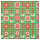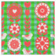 Stylish design inspired by Scandinavian folk art with pretty flowers, birds and hearts in red, white, green and turquoise blue.