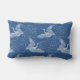 This surface pattern in rich blue and light blue has a flock of birds in flight and thin swirled lines drawn to resemble clouds in the sky. The pattern is adapted from a Chinese ceramic pattern and makes a lovely lumbar accent pillow for your home. This design is also available in a square pillow.