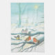 Birds in the white snow winter tea towel