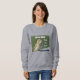 Are you an avid birder and love to spend hours wandering birds fly and sing among the trees? This sweatshirt features a small house sparrow sitting on a ledge. The beautiful brown feathers and bright eye of this small bird is set against a blurred green foliage background. "Birds Make Me Smile" appears in white font and may be customised if your desire.