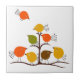A retro design of birds flocking together in Autumn shades of gold, orange, green and brown.