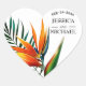 Introducing the Birds of Paradise Bliss Heart-Shaped Sticker, a romantic touch to your wedding stationery. This heart-shaped sticker features a captivating background adorned with the vibrant and exotic Birds of Paradise flowers, creating a tropical and romantic design.