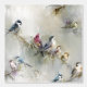 Vintage oil painting birds on a branch .. muted colours of various birds , loosely painted in oils