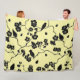 Birds on Cherry Blossoms Black on Lemon Yellow Fleece Blanket